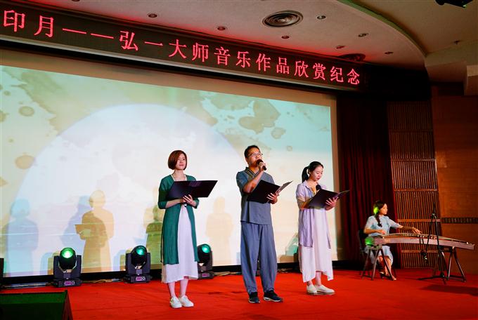 来自浙江电视台的节目主持人、来自浙江音乐学院、浙江省朗诵协会、潮音书院、西湖文化特使协会的同学、老师分别登台演出,传递自己对于弘一大师作品的深刻理解、独特表达。