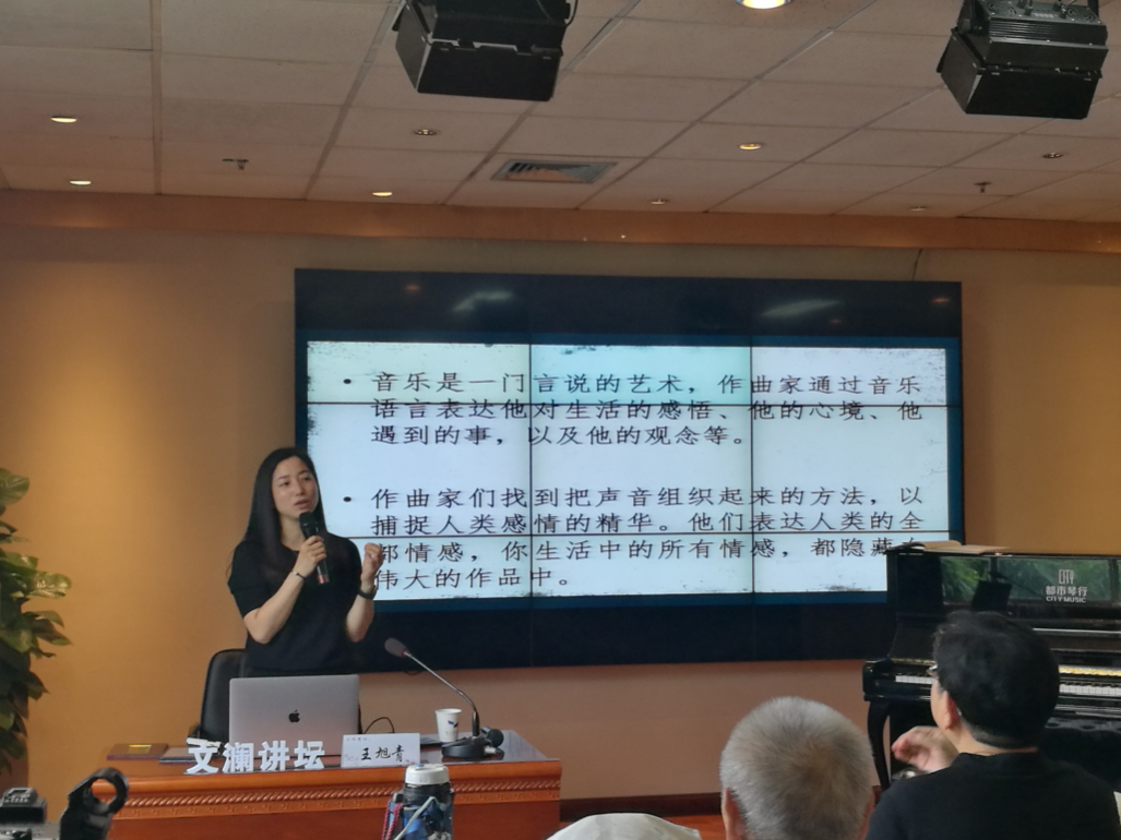 时值端午假期,浙江图书馆二楼集体视听室座无虚席,6月17日上午,文澜讲坛“聆听音乐中的人文与哲思”如期举行。来自杭州师范大学的王旭青教授,带领着音乐爱好者们重品经典,领略大师风采,进行了一场思想和艺术的洗礼。