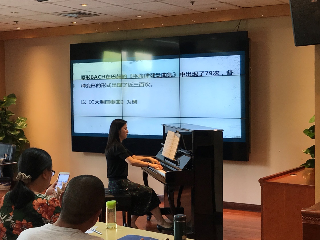 王老师的讲解深入浅出,辅以音频图片,并现场演奏,美妙的琴声流露于指尖,流淌进听众的心里,渗入灵魂,带给我们无尽的遐想,也渐次体会到“巴赫时代音乐就像玫瑰盛开在雪原般的无边无际的寂静之上”的意境。