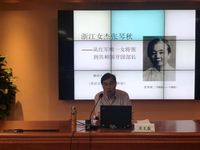2018年7月1日,在浙江图书馆开展了以《浙江女杰张琴秋——从红军唯一女将领到共和国开国部长》为题的讲座,著名传记文学作家、剧作家周文毅出席并主持了本次讲座。许多热爱文学的听众也纷纷到场学习。