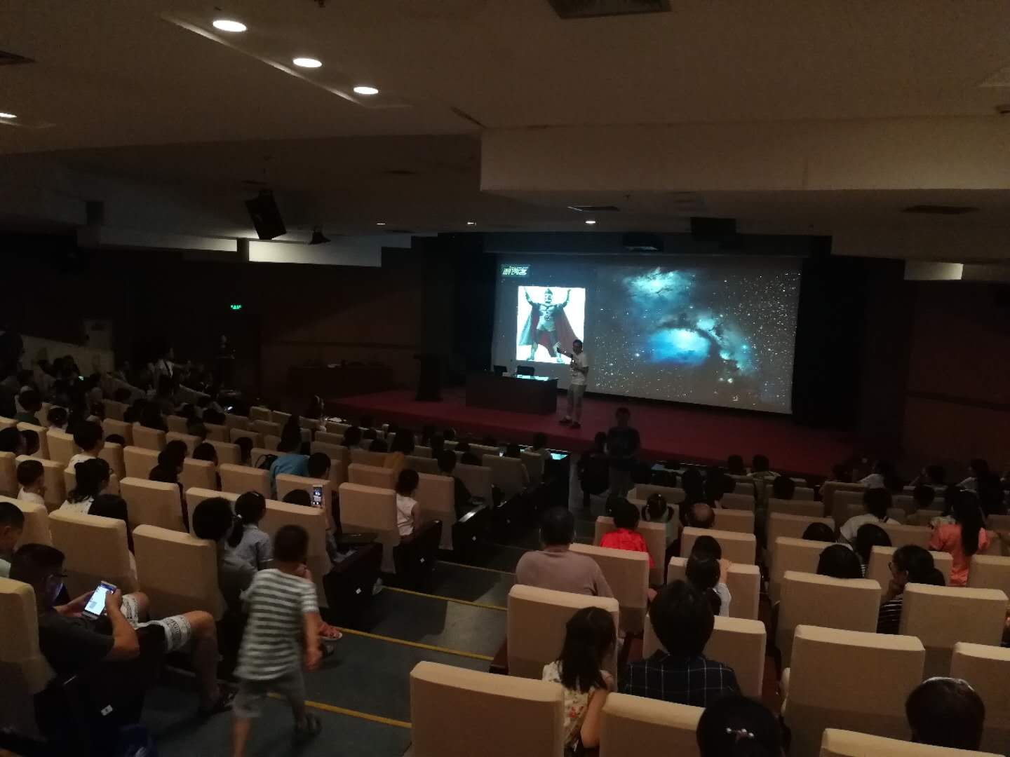 讲座内容围绕星系的发源、行星的构造、分布以及人类在航天史中发展的艰辛历程。在讲座进行期间,陈老师用幽默诙谐的表达不时博得满堂喝彩,并与台下小朋友、家长多次互动,讲座氛围轻松、欢快。陈老师首先从行星详细介绍的开始,讲到了太阳系行星分布及构造;再到人类航天发展史中的进程,取得了辉煌的成就,同时也有一些令人悲痛的代价,诸如1986年美国“挑战者号”航天飞机升空72秒后爆炸、1996年长征3号首次发射失利,2003年美国“哥伦比亚”号航天飞机空中解体爆炸等等。在讲座结束后,陈老师针对讲座内容与现场的小朋友们进行了互动问答环节,小朋友们积极举手提问。陈老师对小朋友们提出的问题做了详细解答。