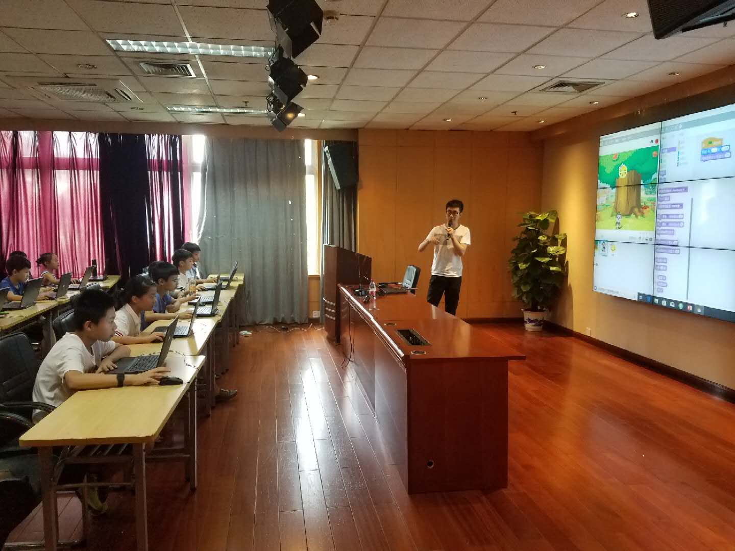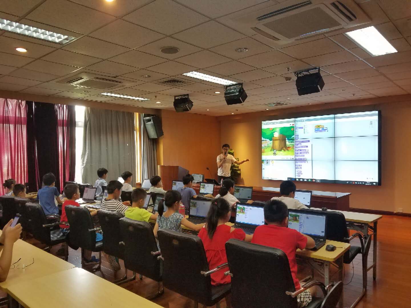 2018年7月7日上午10:00,由浙江图书馆与小码教育主办的《Scratch趣味少儿编程》迎来了第二节课——猴子接水果。本节课的主讲老师由小码教育刘宇老师主讲。