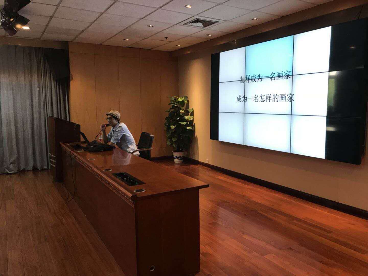 课堂伊始,王老师抛出了两个命题:怎样成为一名画家?成为一名怎样的画家?以次为出发点,展开了本次课程的内容。首先王老师从个人学习经历出发,阐述了他眼中对绘画的认识和态度。他说绘画是一件自由的事情,是自己想去做而不是被迫去做的。简单的语言讲述出一个人成为一名画家的基本要素。就像生活中,我们处于各行各业的人们,大家的出发点只有是热爱才会变成某一领域的佼佼者。