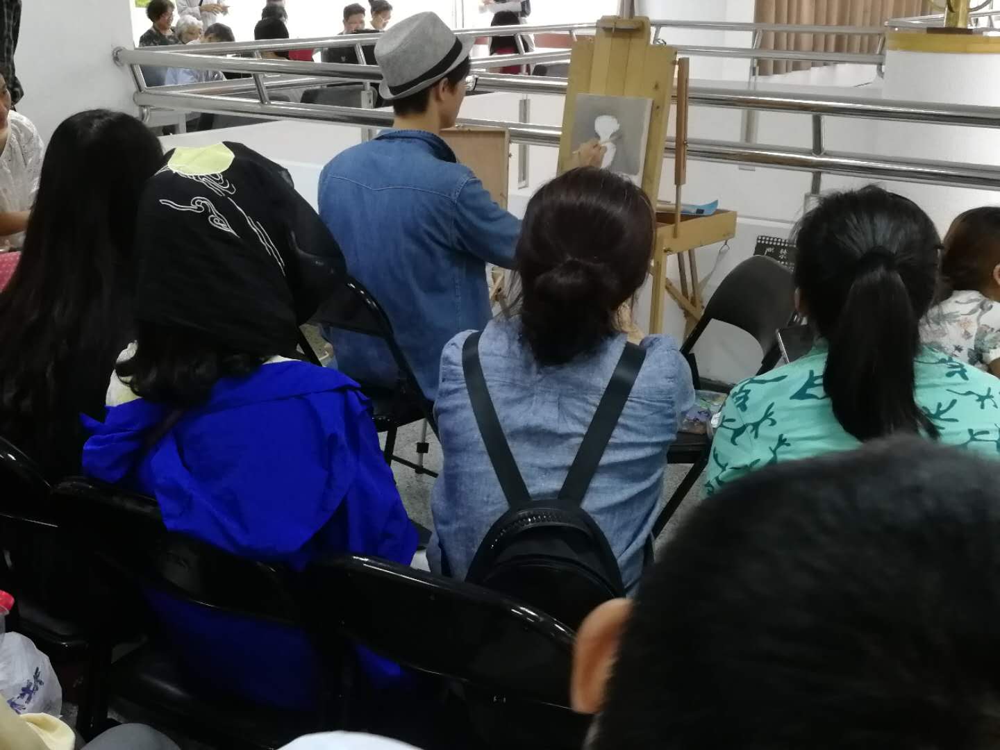 最后,王家豪老师为大家现场演示绘画了两幅经典的油画作品,大家聚精会神地十分专注,现场氛围特别融洽。期间学员们不断就自己所遇到的问题向王家豪老师提问,王老师以幽默的语言向学员详细地解释了所提出的问题,学员表示学到了许多。王家豪老师就这样边介绍边演示。不久,画作完成,学员们争先恐后地对画作拍照留念,同时有学员拿着自己的临摹作品请王家豪老师点评。持续两个多小时的油画教学在一片掌声中结束。