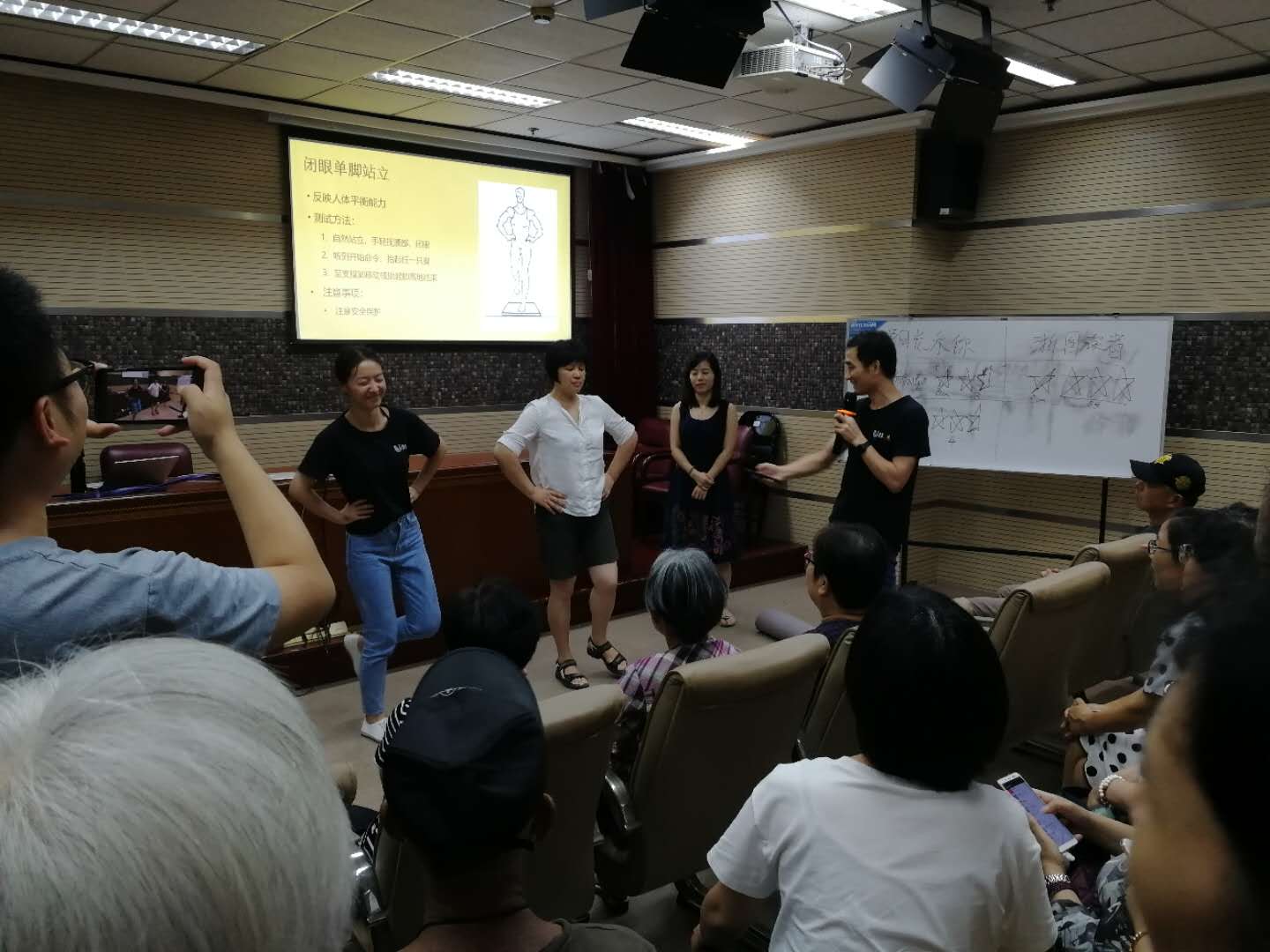 2018年7月5日周四下午2点,在浙图一楼文澜厅进行了一堂热闹地运动养生课——《运动延缓衰老:什么才是适合你的锻炼方式》。本次课程是退休美好生活讲坛系列的第四讲,由杭州师范大学国家唯一“治未病与健康管理”博士人才培养基地专家——赵发林老师主讲。