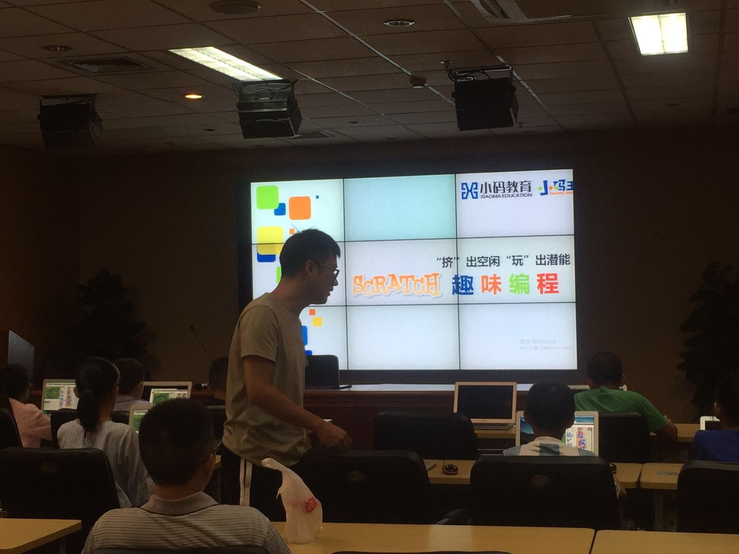 2018年8月4日晚6点30分,由浙江图书馆和小码教育联合举办的《Scratch趣味少儿编程》系列课程在浙图二楼集体视听室如期进行!本次课程内容是《Scratch趣味少儿编程—双人竞技赛车》,主讲老师由小码教育的马少克老师主讲。