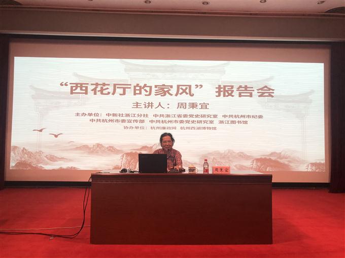 周恩来生前非常热爱杭州,曾30余次来到杭州。在梅家坞的茶山上,他曾经拒绝当地干部的送礼,坚决自己掏钱;在全市最小的剧院的地板上,他欣赏表演后曾经席地而坐与群众亲切交谈……行走图书馆一楼展厅,100余张老照片承载着周恩来在杭州的点点滴滴。随后,周恩来侄女、中央文献研究室周恩来研究会常务理事周秉宜现身“西花厅的家风”报告会,为参观者、听众讲述那段在中南海生活的往事。“我从1949年住进西花厅,后搬出去又住进来,前后共住了近20年时间。”周秉宜回忆,周总理和邓颖超在工作和生活上都严于律己,对待家人亲戚也十分严格,从不以职务之便为亲戚安排工作。“还记得上学时,别的孩子一般都是汽车接送,但伯父让司机骑自行车来接我们,有时是坐三轮车。他说不能公车私用,这是我从小受到的言传身教。”