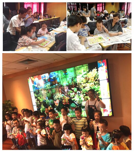 看小朋友们做的多漂亮啊!绿的,粉的,紫色的多肉,多肉形状各异,可谓各有特色,都非常漂亮呢!最后小朋友们带着自己这堂课的杰作一起合影留念,相互欣赏。