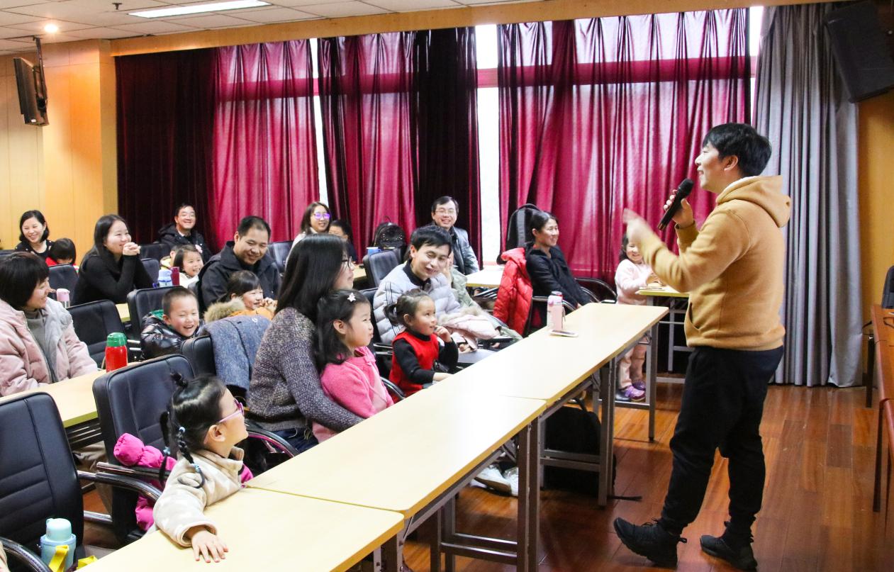 12月15日下午2点,浙图二楼集体视听室热闹非凡,小朋友在“大朋友”—小棋叔叔的带领下一同学演绘本故事《獾的美餐》。主讲老师赵浚棋,人称小棋叔叔,温州经济技术开发区艺术团团长;温州经济技术开发区大眼睛志愿者爱心社社长。小朋友的嬉笑声令人流连,小棋叔叔的故事也令人神往,绘本故事更是精彩纷呈。