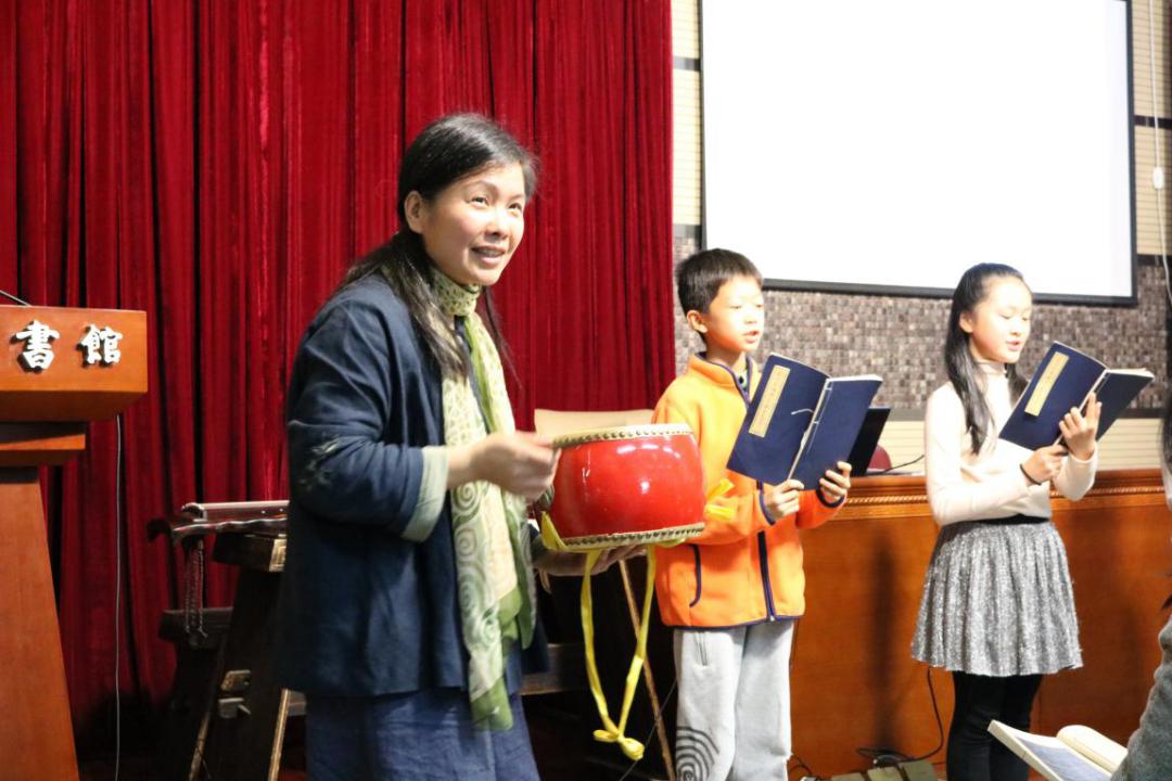 吴老师将诗经乐谱的特点与翻译中主要依据的乐制作以简介,圣湖雅乐团成员将作快诵式、慢吟式、对吟式与文人乐歌表演,教大家简单认读,并和琴唱颂《诗经·小雅·鹿鸣》。