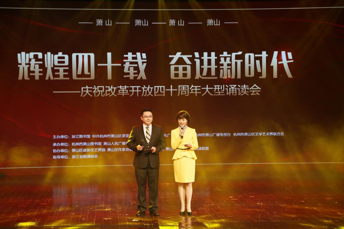 为庆祝改革开放40周年,热情讴歌及展示全省市民的精神风貌,唱响主旋律,传递正能量,12月16日下午,由浙江图书馆与萧山区委宣传部、文广新局、萧山广播电视台、萧山区文联主办,萧山图书馆、萧山人民广播电台承办的辉煌四十载 奋进新时代——庆祝改革开放40周年”大型诵读会在萧山图书馆二楼世纪剧场圆满落幕。