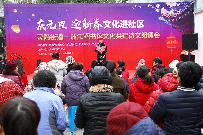“庆元旦 迎新春”文化进社区——灵隐街道&浙江图书馆文化共建诗文朗诵会,于2019年1月1日下午14点30分在东山弄文化小广场隆重开场!