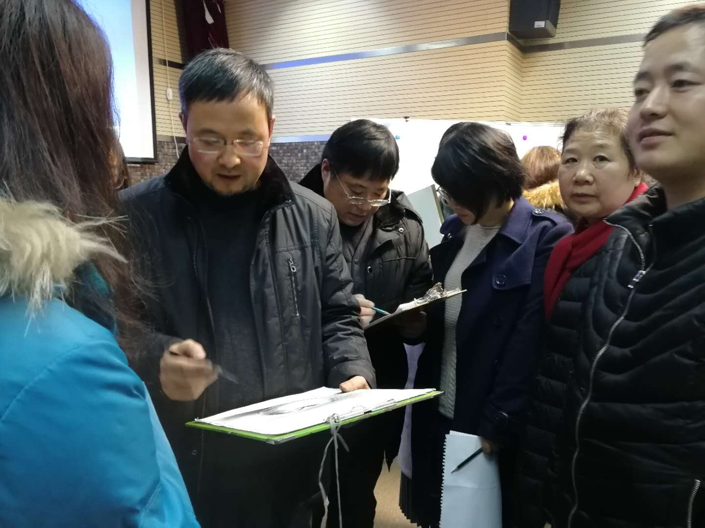 理论知识学习完后,唐宽老师带着大家进行实践学习。唐老师准备了一张苹果图,让学员练习画苹果。虽然苹果是绘画的基本参照物,但是要想画好也不容易,其中最难画的是苹果梗部凹陷处对光的处理以及苹果阴影部分的掌握。学员们积极参与练习,画好后纷纷拿给老师请教点评,唐宽老师也很有耐心的依次回答学员提出的疑问并对学员的作品进行修改。