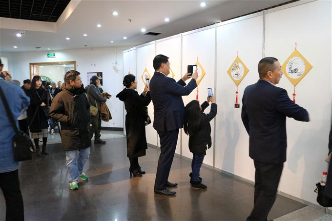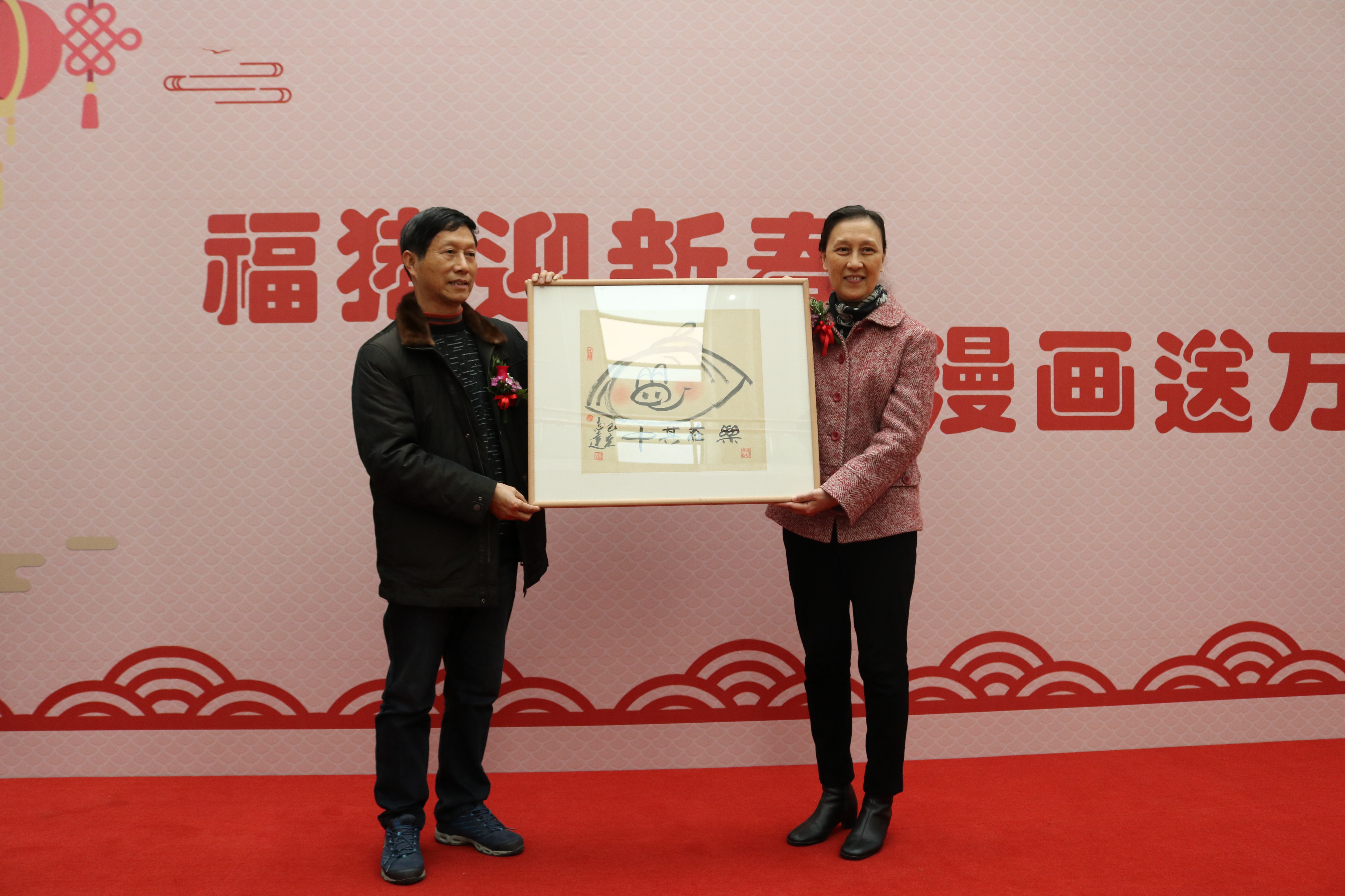 展览开幕式后,各位嘉宾和读者共同参观了展览。展览将持续至2月12日。同时在1月13日举行了肖像漫画活动,并在春节期间,读者参与“浙图扫福 码上有礼”活动,将有机会获得福猪漫画礼品。