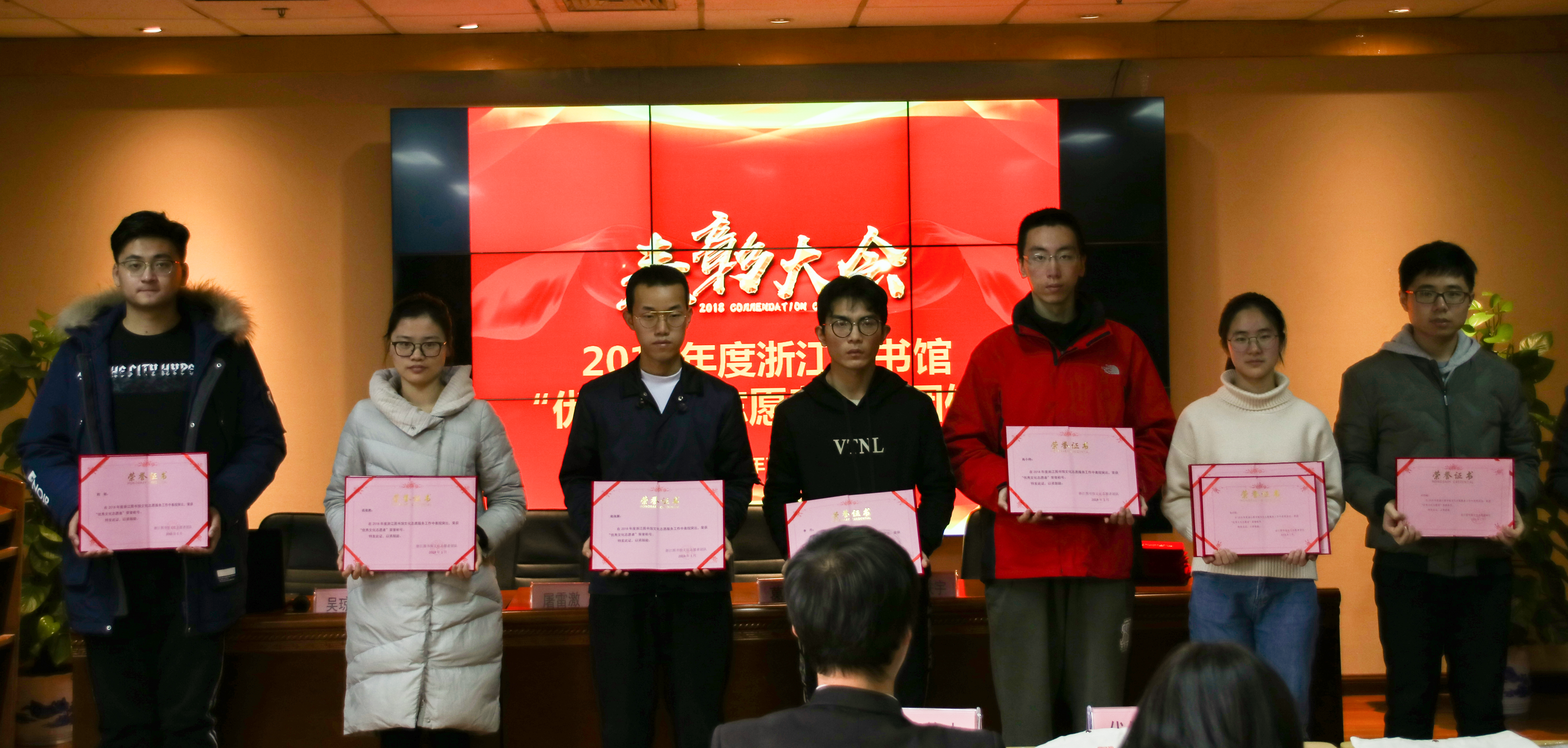 会上,浙江图书馆对2018年度志愿服务工作作简要汇报,对全体志愿者一年来的辛勤付出表达诚挚谢意。对在2018年度浙江图书馆文化志愿服务工作中表现突出的15家优秀文化志愿者团体和24位优秀文化志愿者进行表彰,并颁发荣誉证书。