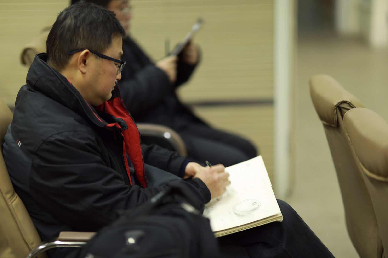 本次课程是绘画素描课程的收官之课,所以学员们早早地便赶来上课地点。希望能在课前让唐老师指导自己的画作,跟唐老师多做交流学习。课程正式开始后,唐老师先和大家简单说明了一下速写的概论,速写能培养敏锐的观察力、概括力和记忆能力。接着,唐老师给大家分享了一些精美的速写作品,和大家分析作品中的速写技巧。最后,唐老师给现场的学员们现场演示创作了三幅速写:曼陀罗、小孩的手和茅草屋。唐老师创作一边在讲台上速写,一边告诉学员们要领:先观察,然后进行布局,最后才落笔画。在画的过程中要有节奏感,有起伏变化。整个人的状态要激动,有一种交响乐的感觉。