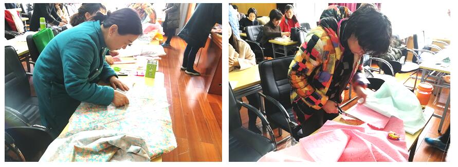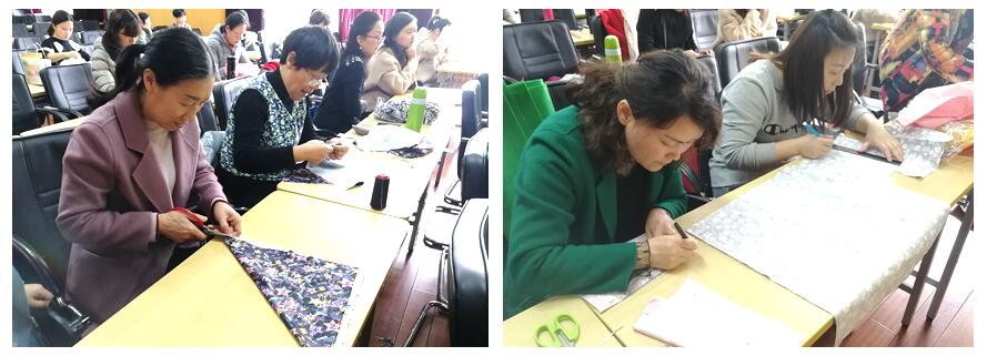 刁老师,首先跟大家介绍了基本的缝纫针法,然后把事前准备的信封包展示给大家看,给学员们讲解信封包的制作步骤和注意事项。首先,先进行面料裁剪。大家根据自己的面料大小进行适当裁剪成两块正方形面料一块表布、一块里布。然后,进行这边对缝拼合。先拼缝表布,然后同样方法拼缝里布。然后进行表里缝合,准备制作信封口。基本的信封包的造型缝制好后,刁老师给大家讲授了如何做一只漂亮的小纽扣为包包添彩。大家经过刁老师的演示指导后,纷纷有模有样的学做起来。短短的一个多小时,一只简单有型的信封包包就完成了。大家都很开心,竟然可以自己亲自制作包包啦~最后,刁老师对学员们的作品进行了点评,并对下节课要做的内容做了任务布置,学员们纷纷表示期待下节课的精彩内容!