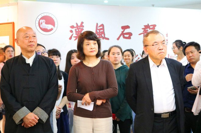 2019年4月9日下午14:00“汉风石韵——金石传拓公益巡展”在浙江图书馆盛大开幕。中国文化研究会金石专业委员会主任张胜吾;华夏石刻艺术研究院院长吴杰森;浙江图书馆副馆长李俭英;中国收藏家协会石刻艺术委员会执行会长、郑州市残疾人康复教育中心主任刘正义;中国文化研究会金石专业委员会副主任、杭州师范大学汉画馆副馆长卜友常等领导嘉宾出席了开幕式。