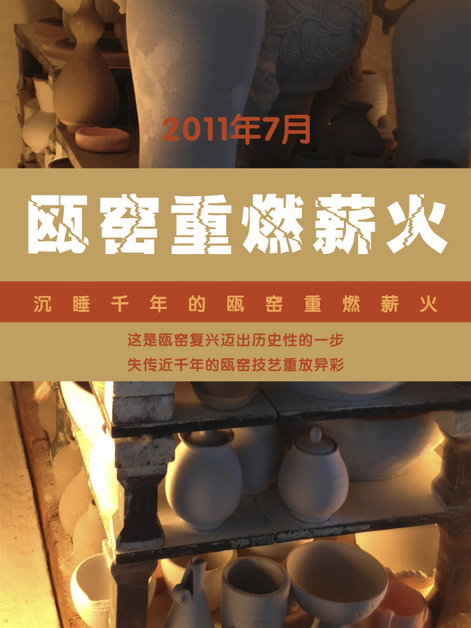 如今,本着民族文化基因与当代文化相适应、与现代社会相协调,实现传统文化创造性转化和创新性发展。伴随着一批瓯窑接力者、传播者的不懈推动,2011年7月,在唐代瓯窑遗址旁,新建瓯窑重燃薪火,让失传近千年的瓯窑技艺重放异彩,让瓯窑这朵中国陶瓷史上的奇葩重新绽放。