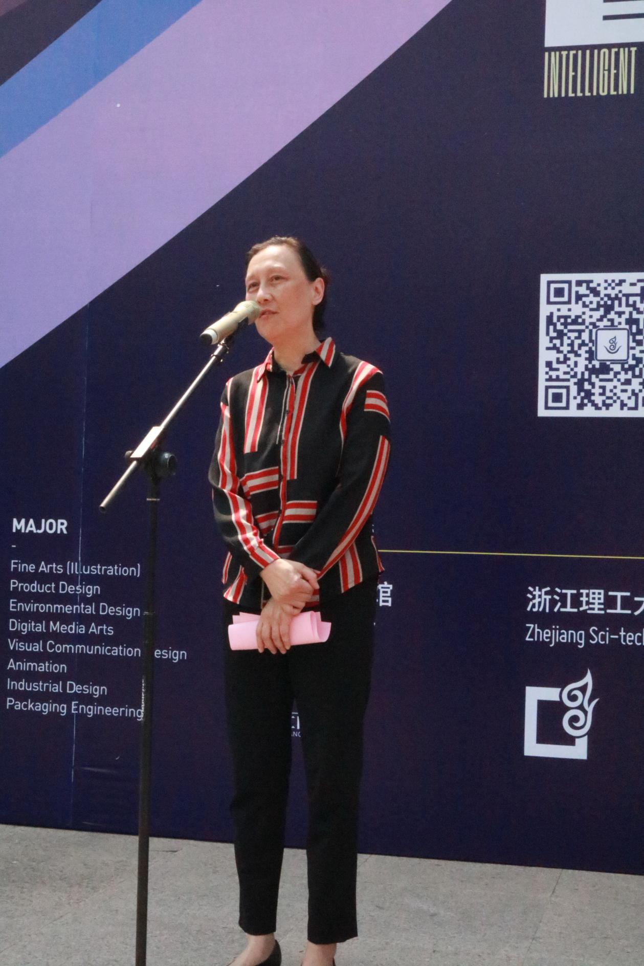 浙江图书馆党委书记徐洁致辞,表达了浙图携手理工大艺术与设计学院举办这场展览,旨在创造更多的机会让读者接触艺术、欣赏艺术的初衷。