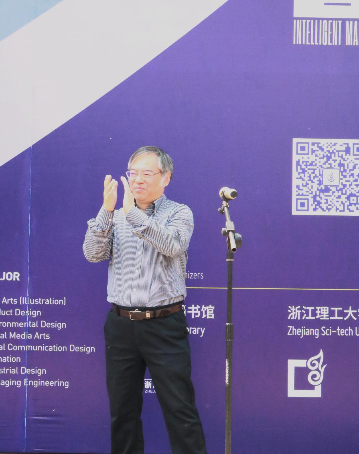 浙江理工大学党委委员、纪委书记孙旭东宣布展览开幕。