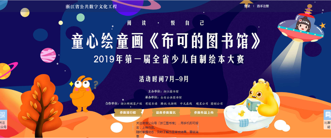 据了解,“阅读▪悦自己——童心绘童画《布可的图书馆》”由浙江图书馆联合全省各级公共图书馆(含少儿馆)于暑假共同开展,这也是第一届全省少儿自制绘本活动。活动面向全省6~12岁少年儿童展开,旨在引导全省少年儿童跟随浙江省公共数字文化工程吉祥物“布可”和他的两位好朋友——浙江新闻客户端的“浙江新闻美少女”、有道乐读的“乐兔”一起走进图书馆,用孩子的视角和画笔描绘爱读、爱学的“布可”、“浙江新闻美少女”和“乐兔”形象,从而激发孩子们更多的走入图书馆自主学习,提升孩子们讲故事、画故事的能力。
