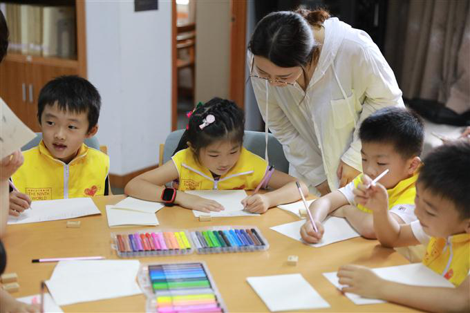 活动期间,浙江图书馆还邀请了绘本专家,对孩子们进行了专业的绘本指导。7月21日,参与活动的“小作家”、“小画家”们在“乐读”专业绘本制作老师的现场指导下,从故事脚本编写开始,设计分镜头,绘制上色,最后装订成册。孩子们借此学习和了解了本次活动的内涵,同时,浙江图书馆也最大程度地发挥了其对少儿群体的教育作用。