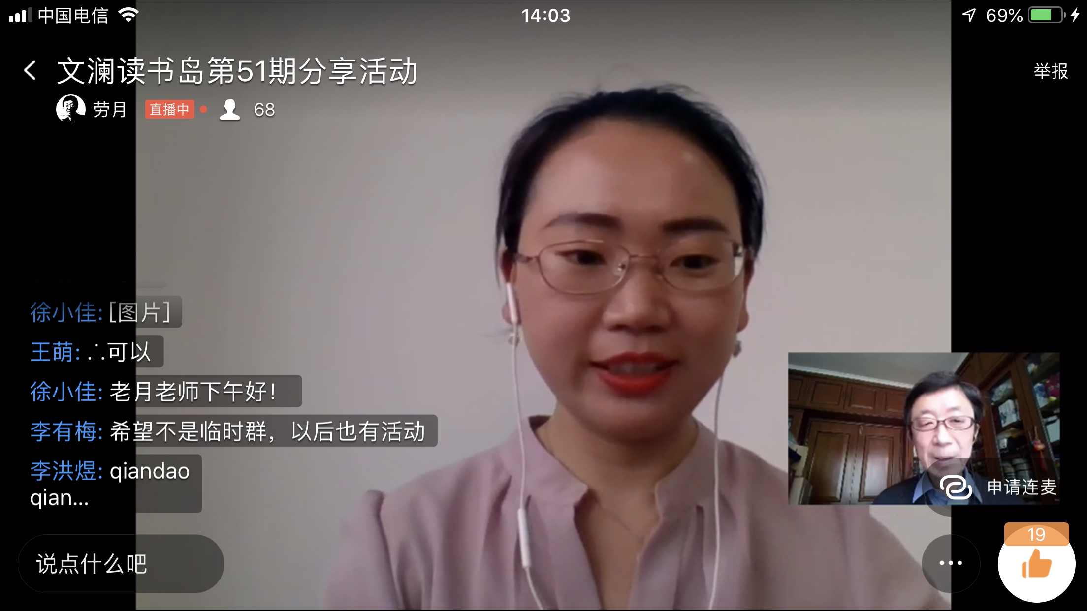 3月21日下午2点,2020年第三次读书岛线上云分享活动准时在文澜读书岛钉钉群视频直播。今天的分享主题是波兰作家奥尔加·托卡尔丘克的长篇小说《白天的房子,夜晚的房子》。