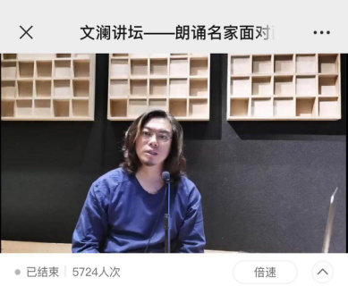 胡乐民在北京电影学院学过表演,在中国音乐学院学过声乐。小时候的京剧童子功,让他的一招一式都充满着一种古风古韵。他融百家所长,开创了令人耳目一新的表演形式——演诵。在讲座中,胡乐民从朗诵艺术的发展演变、形式创新与精神传承、从“说人话”到说“活人的话”、从“文本出发”到“真人呈现”这几个方面出发,向读者朋友们介绍了什么是“演诵”,演诵与朗诵的区别,如何从“真”出发,赋予作品更有创造力的表现形式。