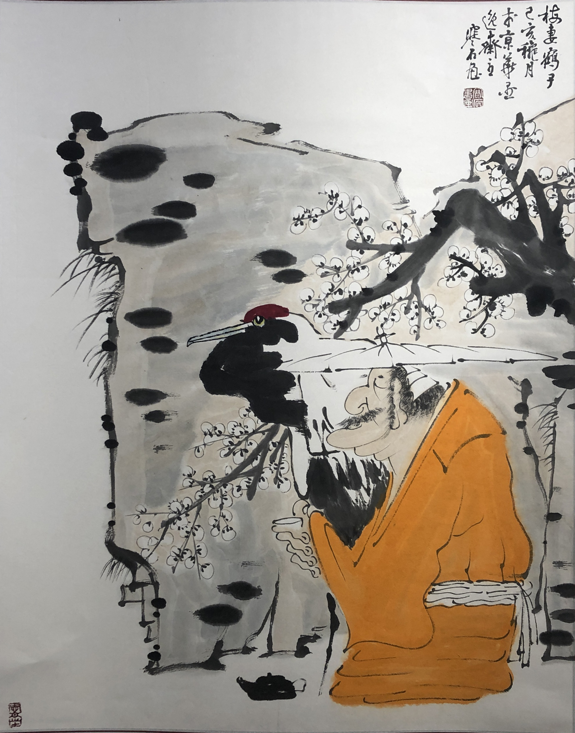 多年来,寒石教授“众里寻他千百度”,苦苦求索,开辟了文人画表达的新语境。他在坚守文人画“简笔为贵”技法原则的同时,赋予了文人画可贵的文化回归。他大胆革除多年来新文人画中只注重个人小情趣表现的弊病,以崇尚自然的风格特征,简笔逸彩的表现技法,清新自然的取义题材,彰显关注生命本源、回答生命意义的哲学意境,表达新时代文人雅士的博大情怀。