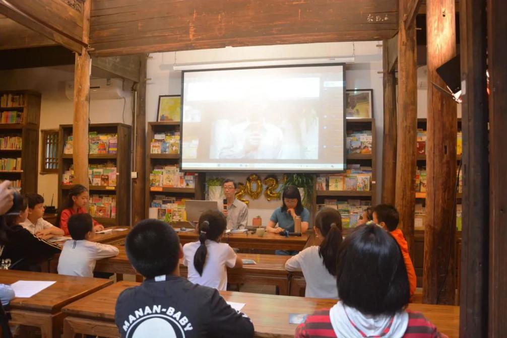 面对现场的十多位汤汤童话书屋小学员和文澜读书岛以及杭州浙大校友会钉钉群里观看视频直播的200多位大朋友、小朋友,曾经的小学老师汤汤娓娓动听地讲述了自己创作《小野兽学堂》的故事。