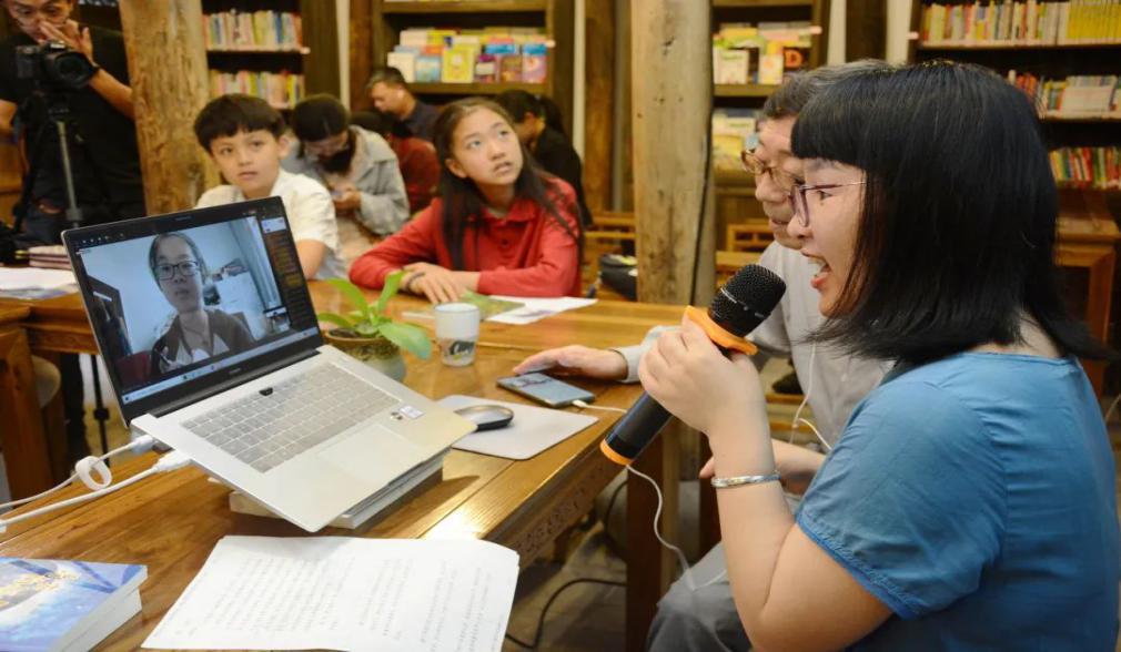 她告诉孩子们,语言像一颗颗石头,垒起故事的房子。所以,不管是华丽的语言,还是朴素的语言,它们首先都应该是准确的,贴切的,能把意思讲得清清楚楚、明明白白的。她让孩子们朗读了《小野兽学堂》里的一些有趣片段,让孩子们领会,什么叫“简洁朴素,耐人寻味,细节丰富,画面感强”的童话写作语言。她还告诉热爱写作的孩子们,灵感就是从日常的生活,而且是从很平常的生活里来的……分享会在一片欢声笑语中接近了尾声。
