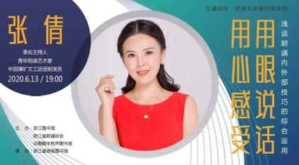 日前,浙江图书馆、浙江省朗诵协会、云图数字有声图书馆共同举办文澜讲坛——朗诵名家面对面系列讲座之“用心感受,用眼说话”浅谈朗诵内外部技巧的综合运用,诚邀中国著名主持人、青年朗诵艺术家、中国煤矿文工团话剧演员张倩和读者朋友们云端见面,漫谈朗诵艺术。‍