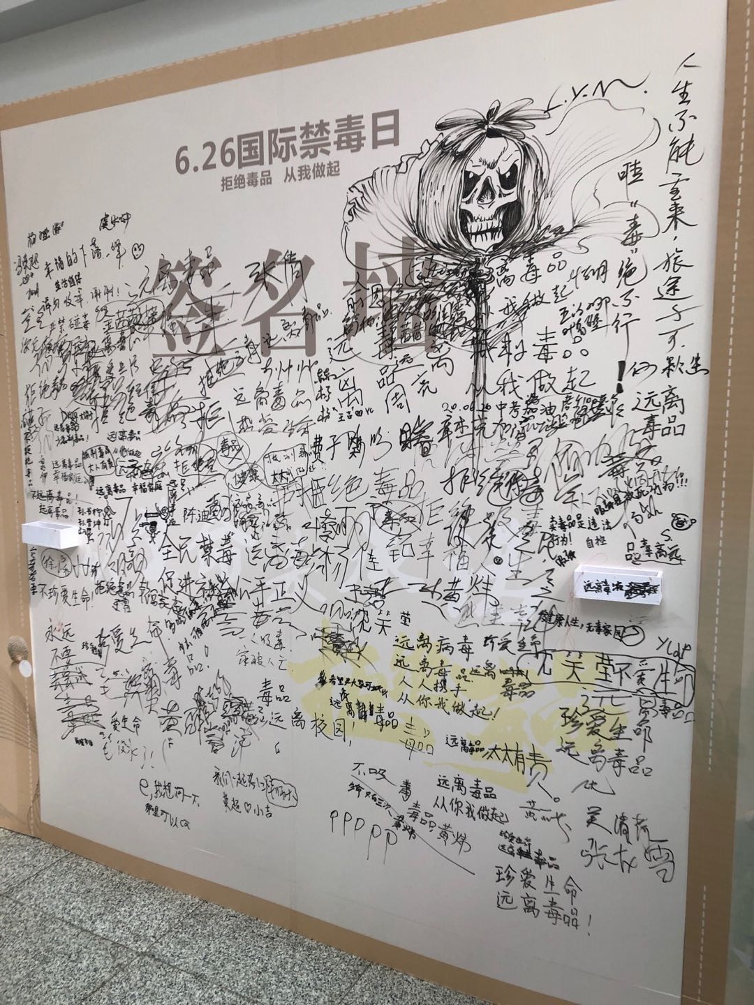 现场还有各种毒品仿真品的展示,让读者更加形象直观地了解各种潜伏的“魔鬼”。参观展览的读者纷纷在签名墙上留言,共同呼吁远离毒品,珍惜生命。