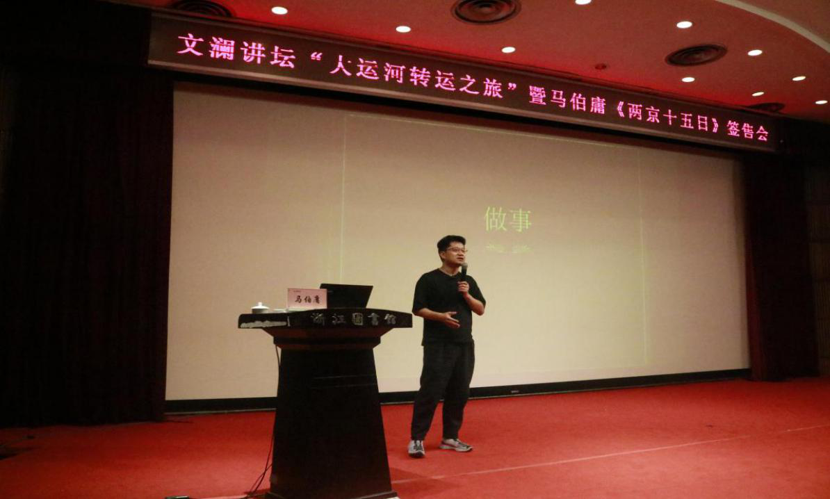 7月26日下午,人民文学奖、朱自清散文奖得主马伯庸携新书《两京十五日》作客浙江图书馆文澜讲坛,以“大运河转运之旅”为主题,以“做事”为主线,聚焦小人物的故事,和浙江的读者朋友们分享新书创作的缘由及故事大致内容,对书中重点涉及到的北京、南京、济南、淮安等城市的风土人情以及明朝漕运展开讨论。