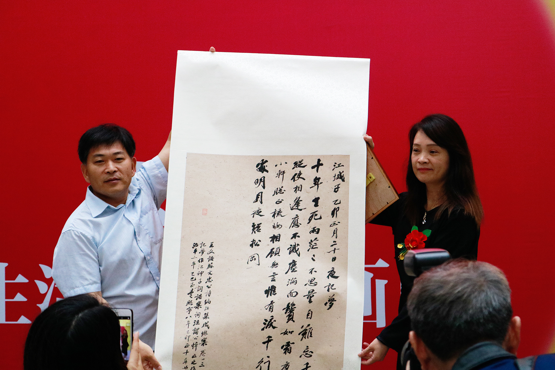 四川眉山三苏祠馆长陈仲文委托杭州东坡画院执行会长田恪宗向浙江图书馆捐赠书法作品《江城子·乙卯正月二十日夜记梦》