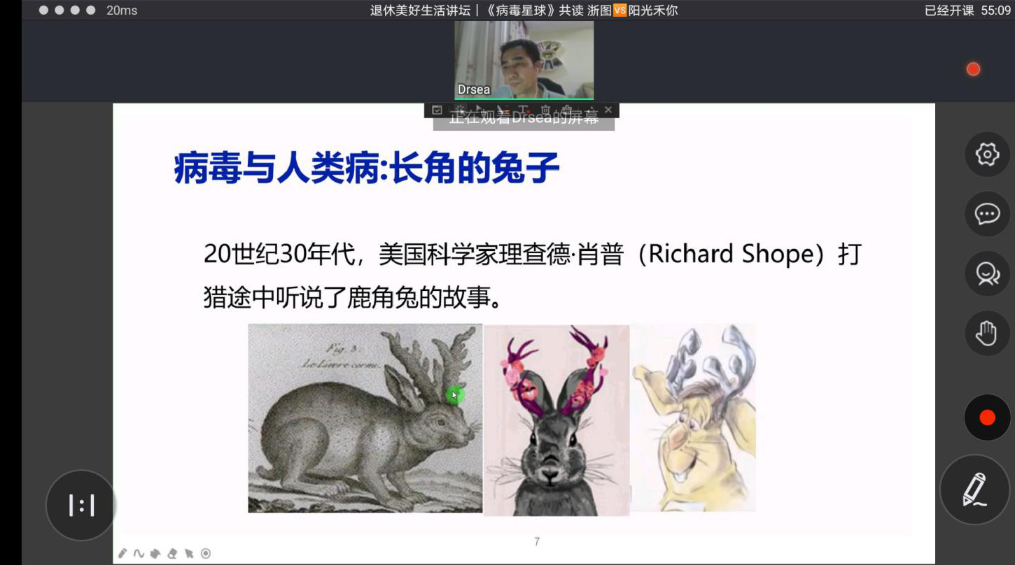 在健康系列中,开展了“医学博士,与你共读健康好书”,特邀流行病与卫生统计学博士赵发林担任主讲,并带领大家在线共读《瘟疫与人》和《病毒星球》。《瘟疫与人》是威廉·麦克尼尔备受欢迎的一部经典作品,也是宏观论述瘟疫与人类历史关系的史学佳作。这部书从首次将病理学与历史学结合,把传染病作为贯穿历史的主线,详解了从史前时代到上世纪前半叶,传染病对欧洲、亚洲、非洲的肆虐以及对历史变革的影响。《病毒星球》一书讲述的是人类出现之前,病毒已经占领了我们的星球。我们发明了种种“小玩意儿”对付它们,到现在,病毒依旧无处不在。通过这部书,让我们微观的了解在大多数情况下与人类“和平共处”的病毒,让我们重新理解病毒与人类的关系,认识人类在万物中的位