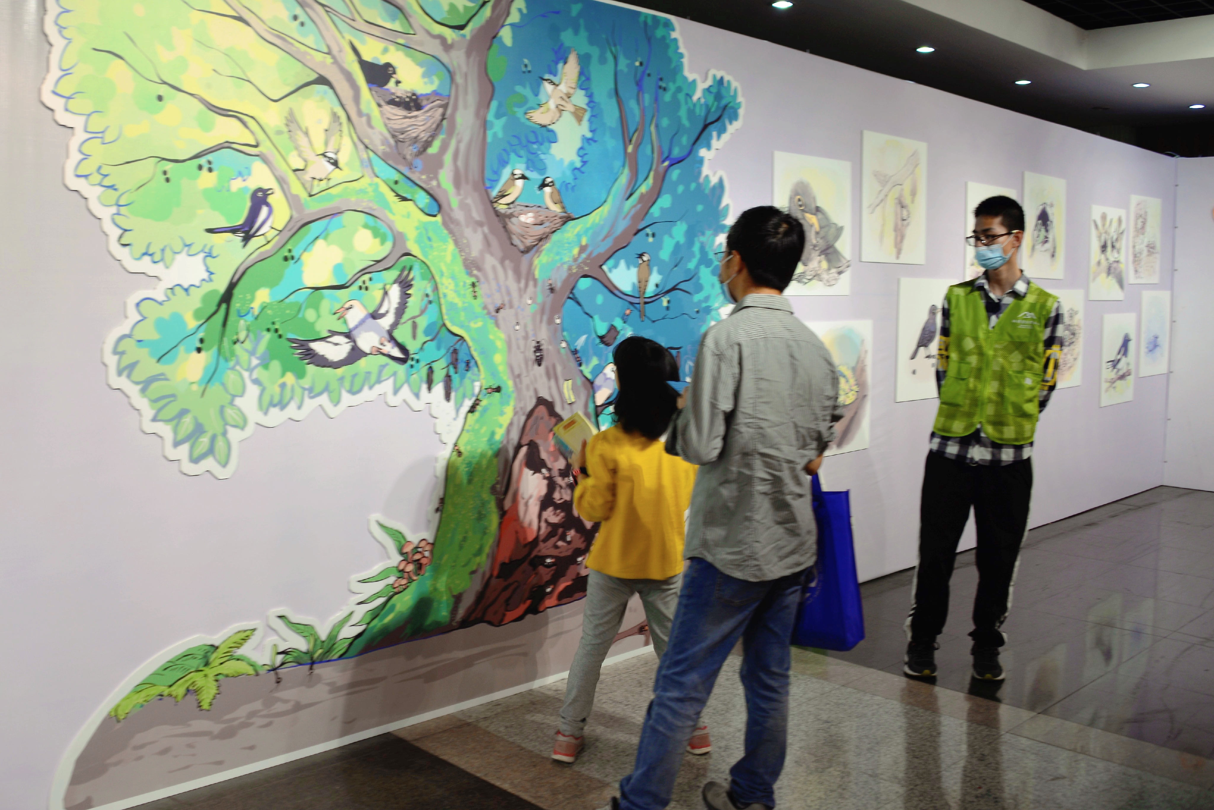 如何引导儿童重新回归自然?针对这一问题的思考,引出了浙江图书馆与阿里巴巴公益基金会、桃源里自然中心、科学松果会的一次合作。我们尝试将绿色自然的概念引入儿童所熟悉的城市环境、钢筋混凝土森林中,把展厅打造成人造森林的模样,同时设置儿童喜爱的游戏,引导儿童接触大自然的美好,然后逐渐地把他们引领到真正的自然环境中去。