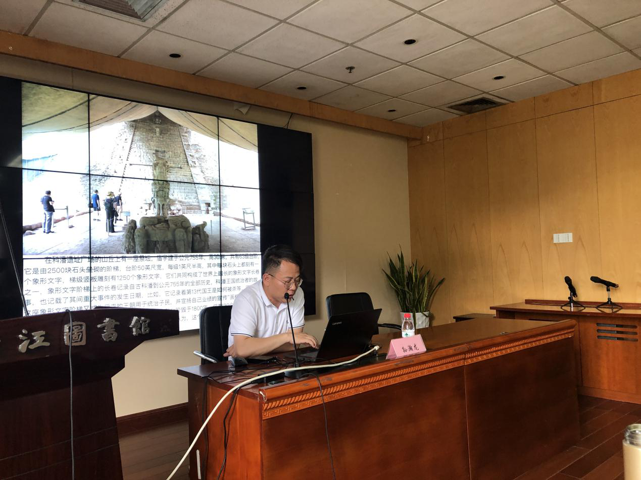 5月15日上午10点,在浙江图书馆二楼集体视听室举办了一场以科潘考古之旅为基础的讲座。这是浙江省文物考古研究所馆员孙瀚龙考古研究员的主题讲座《金字塔和玉米神———科潘纪念碑和石雕像》。