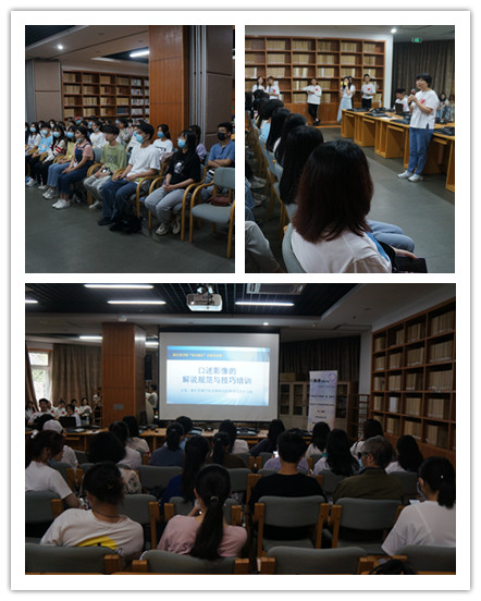 为了提高口述电影的质量,5月16日全国助残日当天,浙江图书馆邀请到浙江传媒学院播音主持学院的童肇勤老师以及无障碍电影解说实践小分队,为在座的志愿者作“无障碍电影解说规范及技巧培训”。通过选取不同的电影片段,小分队的志愿者们对“人物动作”、“画面闪回”、“外语或方言”、“屏幕上的视觉元素”、“电影特效”、“文化背景”等在口述电影时经常遇到的难点作了详细的指导,并邀请现场的志愿者参与口述体验,对电影讲解词的遣词造句、口述节奏的控制、情绪的表达等都作了深入的了解,并请视障读者对口述电影提出了许多建议,听取了视障群体作为受众者在听电影时的切身感受。