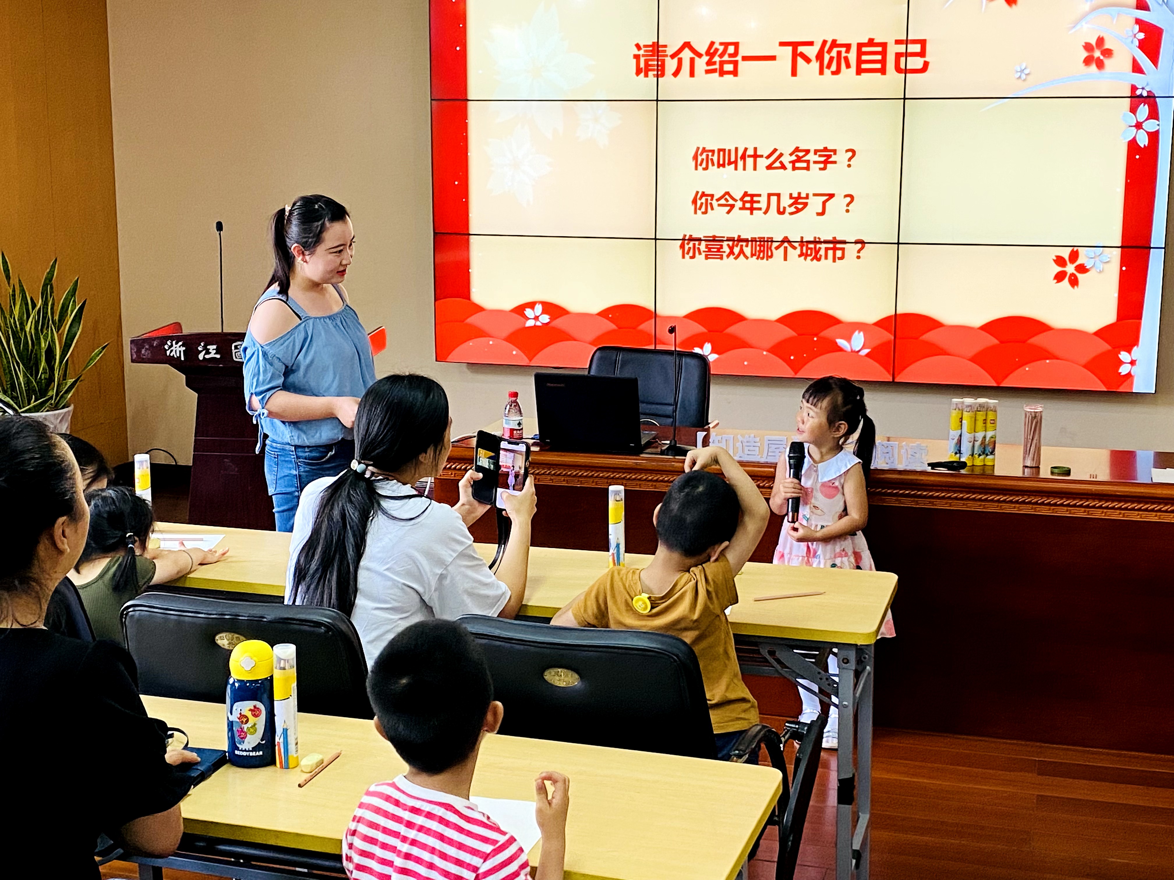 活动伊始,小朋友们热情的依次举手上台介绍自己的姓名、年龄和自己最喜欢的城市。接下来,来自上海书舟科技的少儿培训讲师——白莹为大家介绍了天安门的历史地位,建筑面积和它的建筑历史等相关的知识。通过知识教学,孩子们对天安门有了更深刻的认识。
