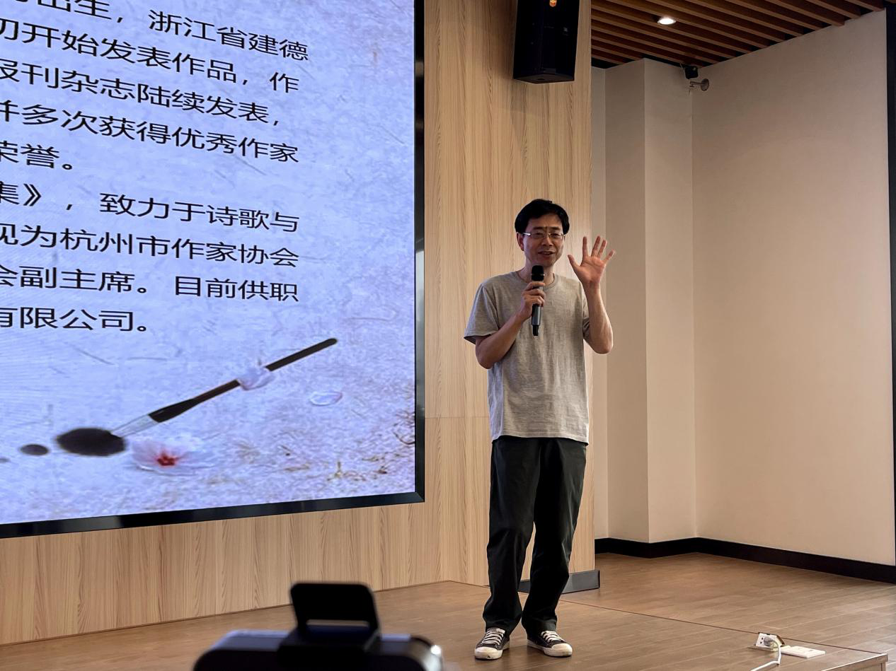 分享会当天还邀请了工人诗人刘景洋为书友讲述他从事诗歌创作的体会。刘景洋曾经是一名工人,从上世纪90年代初开始,在省、市、县级报刊杂志发表诗歌作品,期间多次获得奖项。著有诗集《短歌集》,致力于诗歌与命运、人生的探索。现为杭州市作家协会会员,建德市作家协会副主席。刘景洋说,他和《我的诗篇》里的工人诗人们一样,在上个世纪80年代末参加工作以后,并没有放弃自己的艺术追求。三班倒的繁重工作之外,依旧坚持诗歌写作。用一个星期的伙食费去买《泰戈尔诗集》。这些不为别的,只是为了一个精神寄托和追求。后来,公司发现他的写作特长,把他抽去搞宣传、当秘书,从事公司的管理。刘景洋认为正是诗歌创作,改变了他的命运,造就了他的成功。