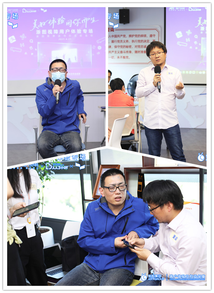 活动中,视障读者赵成以“预约疫苗”为例,指导视障读者如何使用语音助手、搜索栏等功能完成预约疫苗、成人建档等步骤,阿里的技术人员也打开读屏软件,体验无障碍操作。