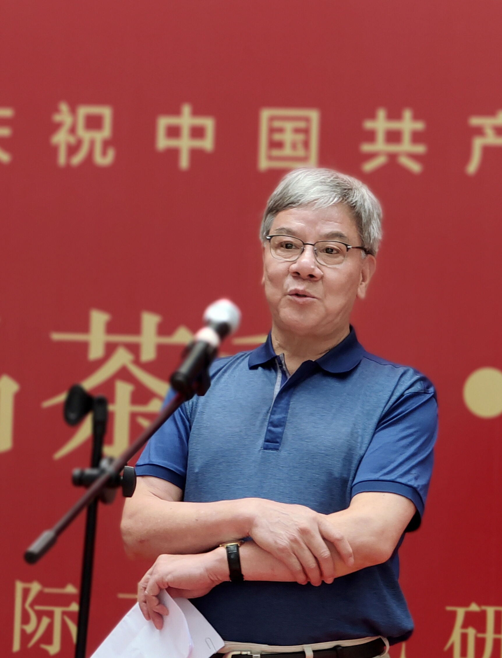 中国国际茶文化研究会会长、浙江省政协原主席周国富为展览揭幕