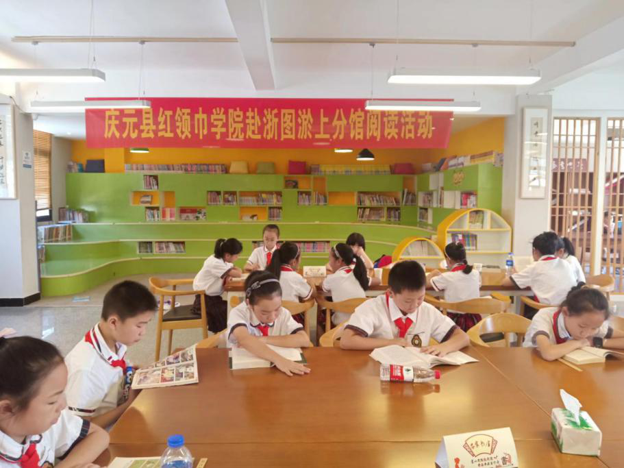 为迎接党的生日,浙江图书馆文献借阅部工作人员专门为淤上村服务点配置了大量适合青少年阅读的红色书籍,协同举办系列党史主题阅读活动,吸引当地家长学生前来参加。2021年6月6日庆元县实验小学36位学生参加淤上村服务点举办的“颂百年风华 传红色基因”亲子阅读活动。2021年6月13日庆元县滨江小学红领巾学院32位学生在老师的带领下,走进图书馆阅读红色书籍,畅谈未来理想。