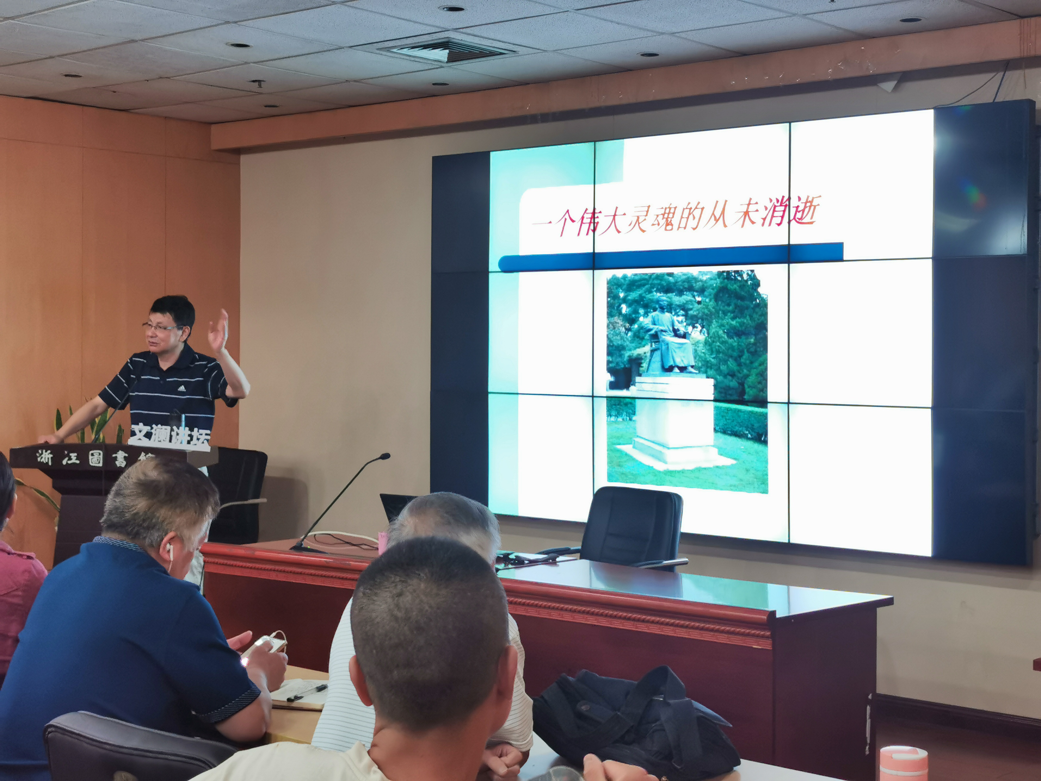 7月17日上午九点半,在浙江图书馆二楼集体视听室,文澜讲坛“两浙名贤——浙江历史名人系列讲座”的第二场讲座准时开讲。今年恰逢鲁迅先生诞辰一百四十周年,本期讲座特别邀请了浙江大学中文系教授,中国鲁迅研究会副会长黄健先生,他给广大听众带来了一场以“鲁迅的现代性精神”为主题的讲演。