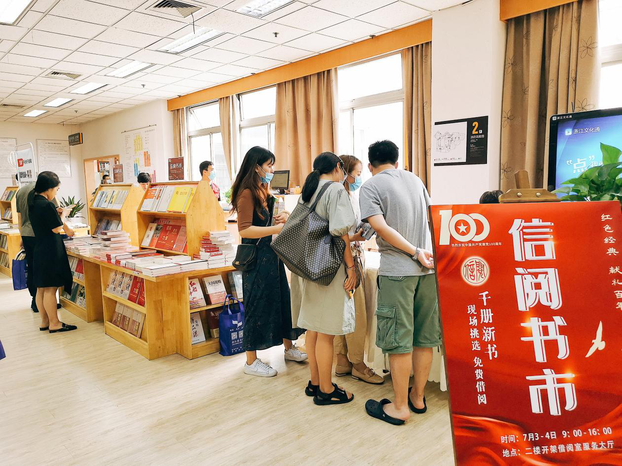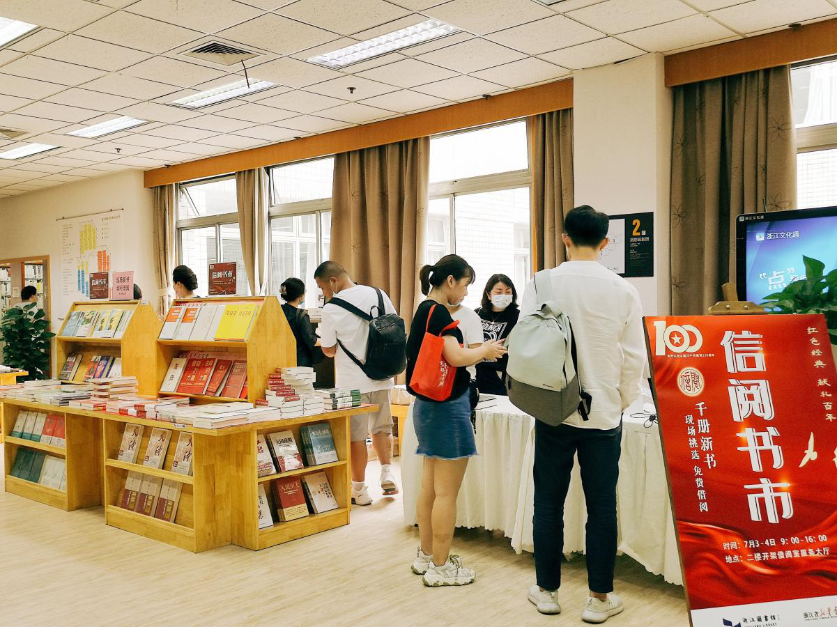 为庆祝中国共产党成立100周年,浙江图书馆于7月3日-4日,联合新华书店共同在馆内举办了“红色经典 献礼百年”新书现场借阅活动,为广大读者推选优质红色文献,使读者在文字中追寻革命先辈的足迹、缅怀革命先烈的故事,激发对英烈的崇敬,对祖国的热爱之情。