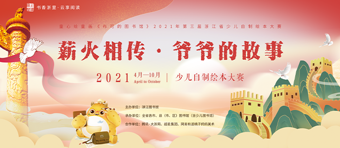 2021年是中国共产党建党100周年,也是浙江省公共图书馆服务大提升行动的关键一年。浙江图书馆联动全省各级公共图书馆启动“童心绘童画《布可的图书馆》第三届少儿自制绘本大赛”,活动面向全社会5~14岁少年儿童征集《爷爷的故事》自制绘本。参与者可通过线上听红军爷爷的故事,看红军小人书,再与记者、老师在线互动后创作一本《爷爷的故事》并录制成视频。10月线下组织颁奖及全省优秀作品巡展。走在绘本阅读、绘本创编的路上,黄老师和孩子们不亦乐乎!