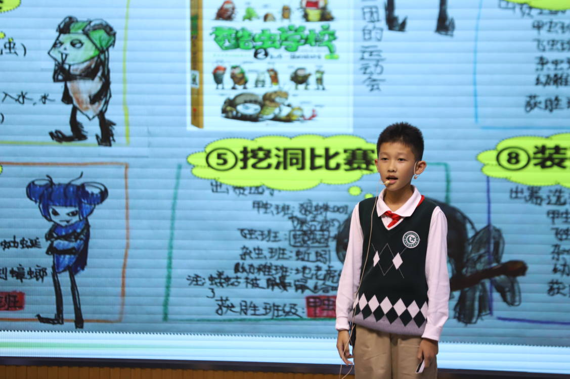 五年级的同学们参与了思维导图荐好书活动。他们手绘出书中的人物关系思维图、内容关联思维图、类比书籍思维图等,运用流畅的语言,向大家展示了各自推荐图书的精彩之处。
