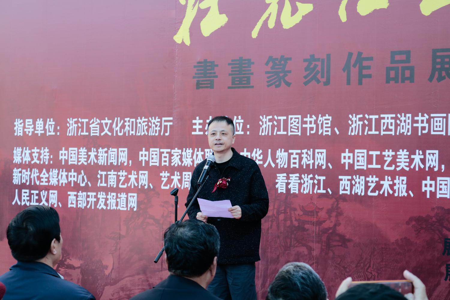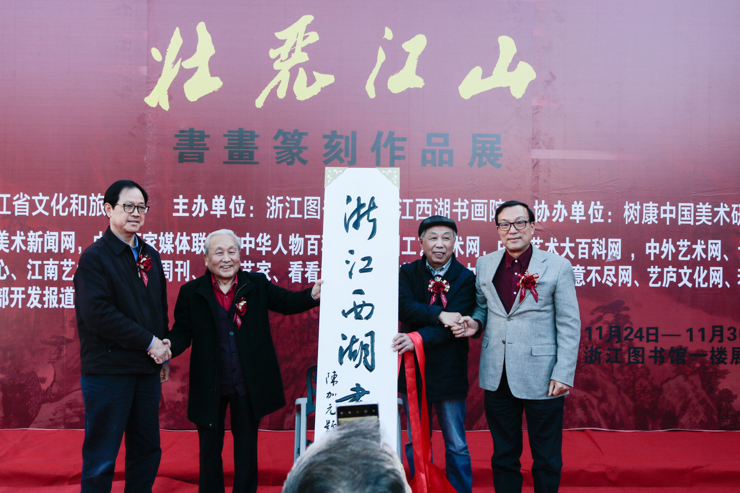 11月24日下午,由浙江省文化和旅游厅指导,浙江图书馆、浙江西湖书画院主办的庆祝中国共产党成立一百周年“壮丽江山”书画篆刻作品展在浙江图书馆开幕。